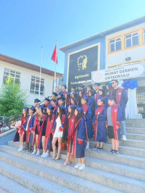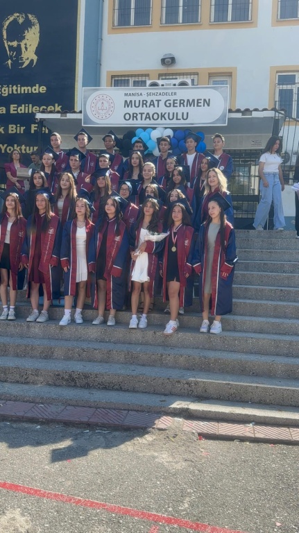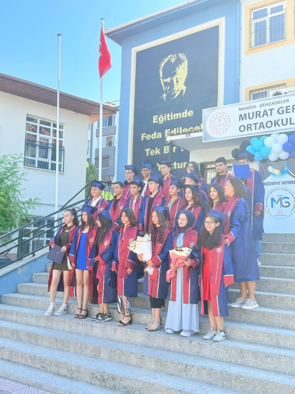 2024-2025 eğitim-öğretim yılı 8. Sınıflar Mezuniyet Töreni idarecilerimizin, öğretmenlerimizin, öğrencilerimizin ve değerli velilerimizin katılımıyla okulumuz bahçesinde gerçekleşti. 8.sınıf öğrencilerimizi bir üst eğitim basamağı olan lise eğitimine uğurlamanın onur ve heyecanını yaşadığımız bu mezuniyet törenimize katılan emek veren tüm öğretmen ve velilerimize teşekkür ederiz. Mezun olan öğrencilerimizin yeni eğitim hayatlarının hayırlara vesile olmasını dileriz.