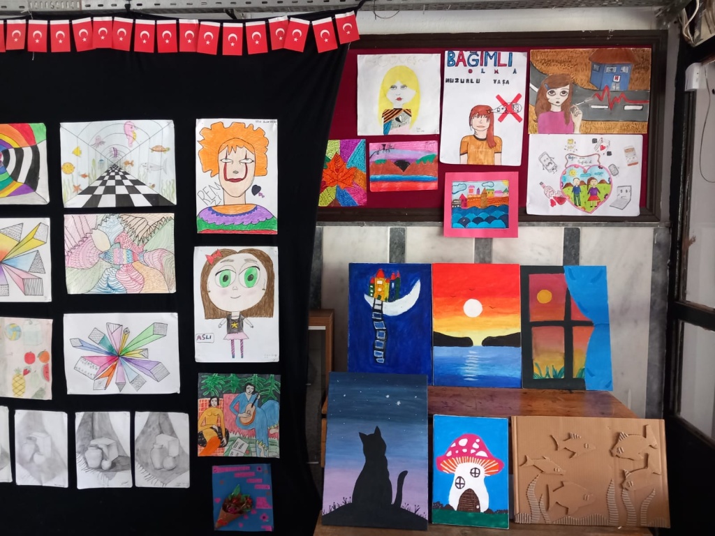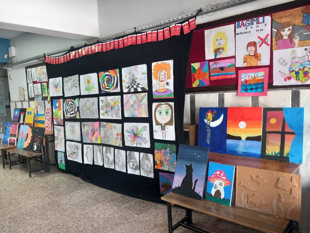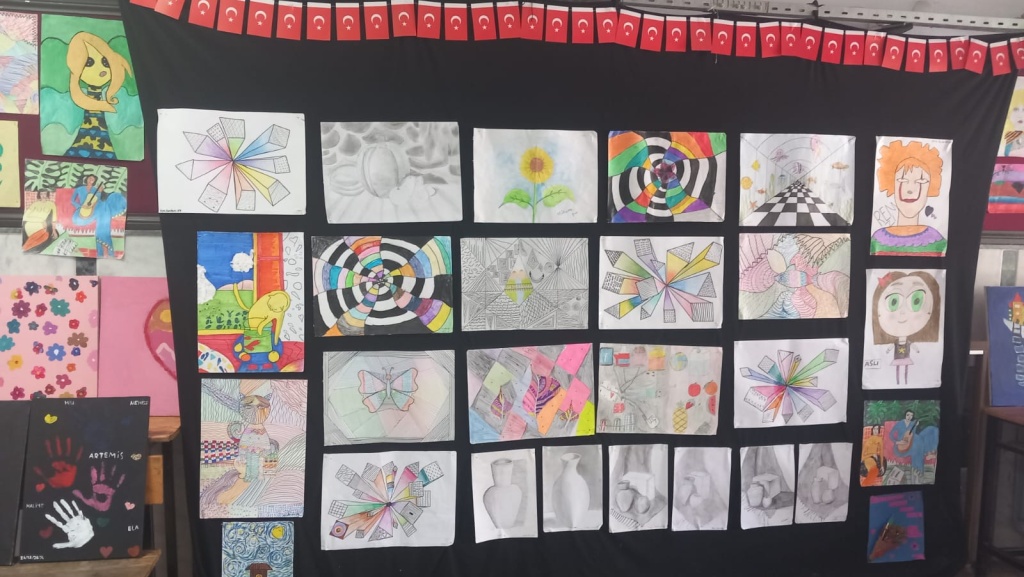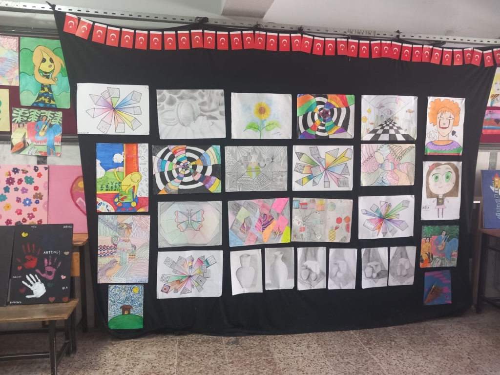 Öğrencilerimizin Görsel Sanatlar dersinde yapmış oldukları eserleri okulumuzda sergiledik.